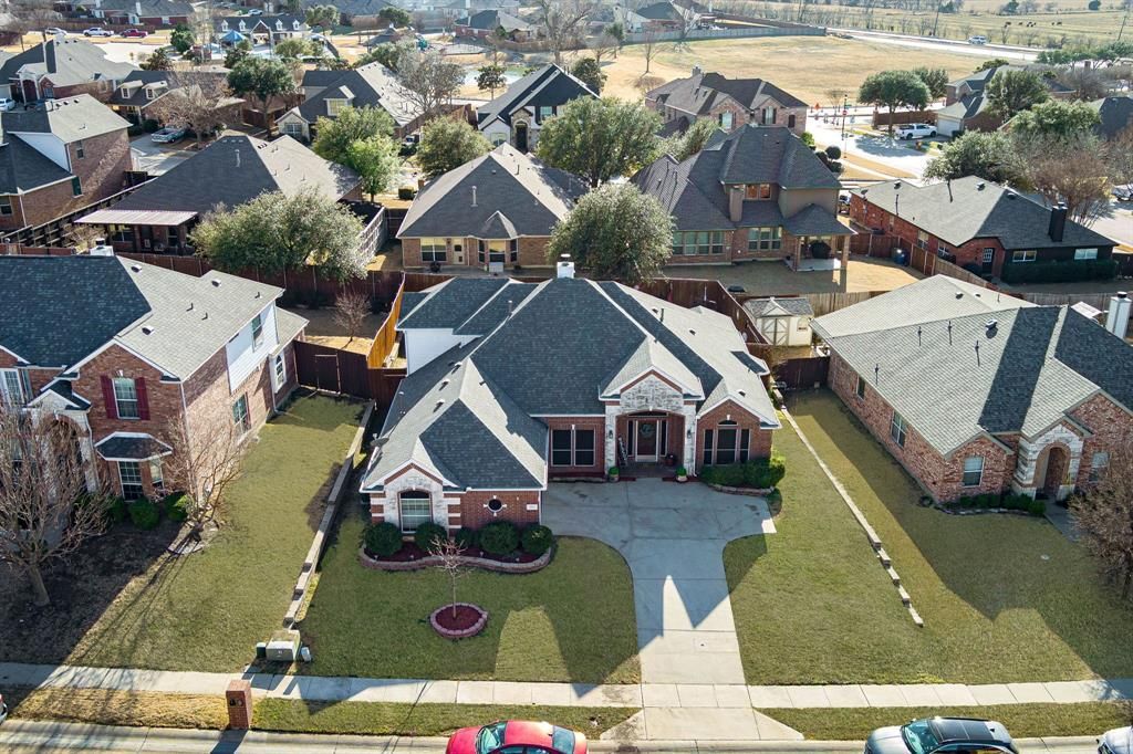 PRICE IMPROVED!!! 2.75 Assumable rate available! Nestled in the desirable Carter Ranch community, this exquisite First Texas–built residence offers a thoughtfully designed floor plan featuring five bedrooms, three and a half baths, and an abundance of upscale finishes throughout. From the moment you enter, you are greeted by a grand foyer flanked by a formal dining room and a private study, setting the tone for both gracious entertaining and everyday living. The home showcases a desirable split-bedroom layout with three generously sized secondary bedrooms and a beautifully upgraded full bath. The expansive living area is highlighted by a gas or wood-burning fireplace and flows seamlessly into the chef’s kitchen, which boasts granite countertops, abundant cabinetry, ample prep space, and stainless steel appliances. The secluded primary suite is a true retreat, featuring an oversized bedroom with its own gas fireplace and a spa-inspired en-suite bath complete with a soaking tub, standalone shower, and an impressive walk-in closet. Upstairs, an oversized second primary with a full bath and plenty of storage. Flexible space could be gameroom or workout space. Step outside to your private backyard oasis, where an inviting in-ground swimming pool, ample green space for pets or play, and a covered patio create the perfect setting for relaxing and enjoying sunset views. Ideally located within walking distance to the elementary school, parks, and scenic ponds, and offering convenient access to Preston Road, the Dallas North Tollway, and the Collin County Outer Loop, this exceptional home combines elegance, comfort, and convenience.